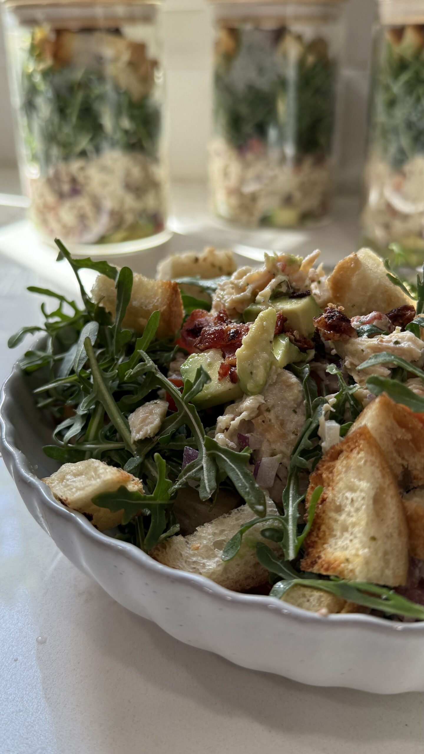 BLT Ranch Chicken Salad Jar with Sourdough Croutons