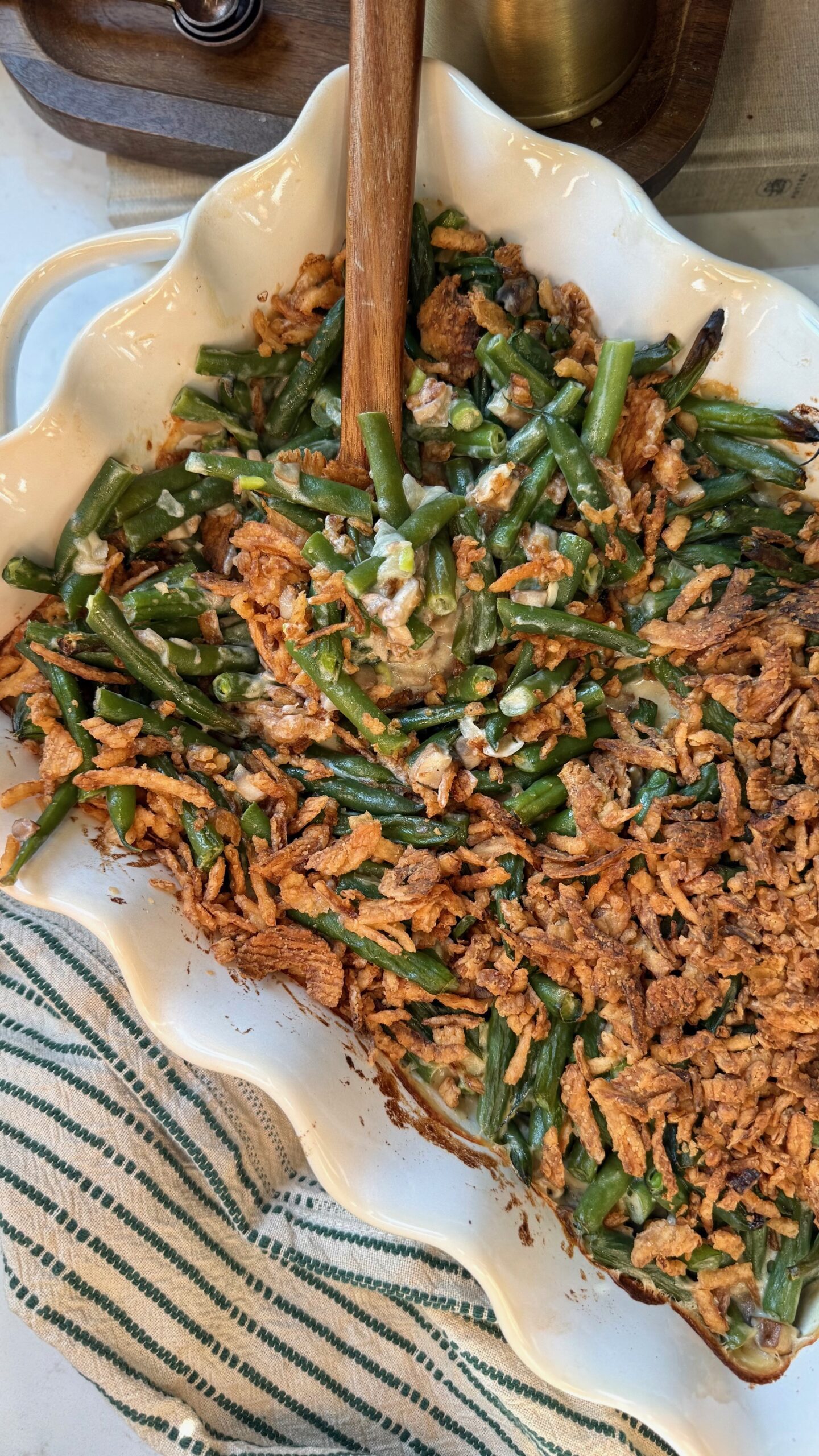 A from-scratch upgrade to the classic holiday casserole—no canned soup, just real ingredients and a silky mushroom cream sauce that tastes so much better than anything from a can.