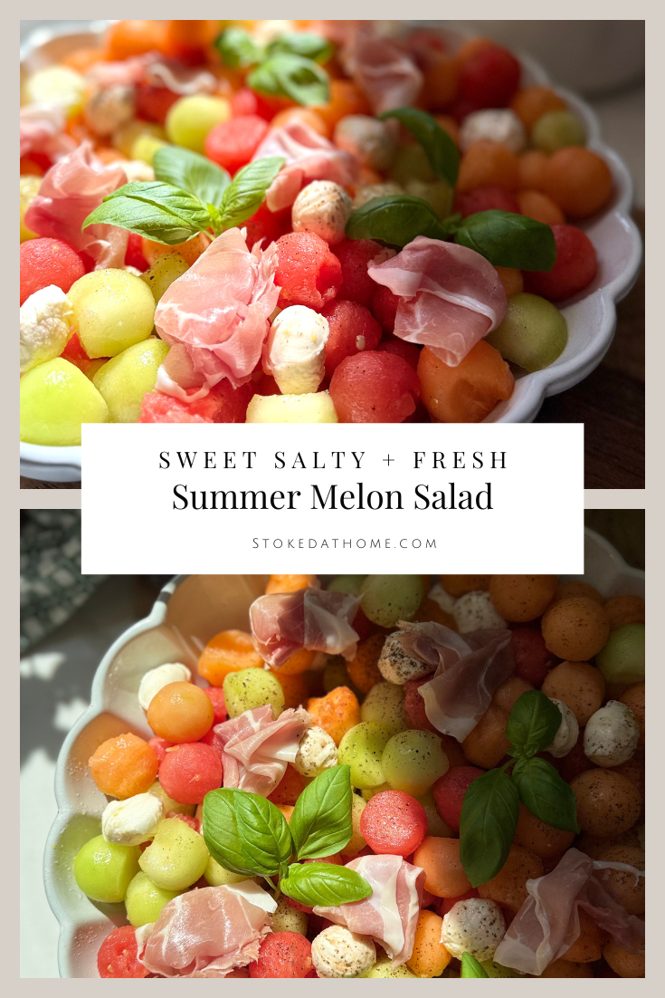 This refreshing summer melon salad is made with cantaloupe, honeydew, and watermelon melon balls, mozzarella pearls, fresh basil, prosciutto, and a zesty lemon-honey dressing. It’s the ultimate light and flavorful summer side dish!